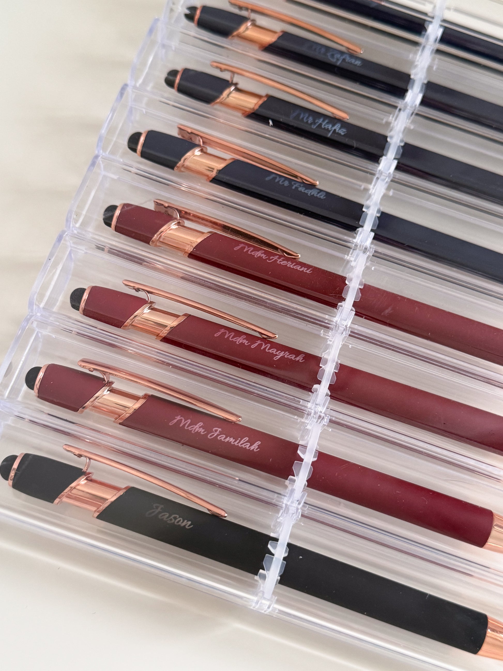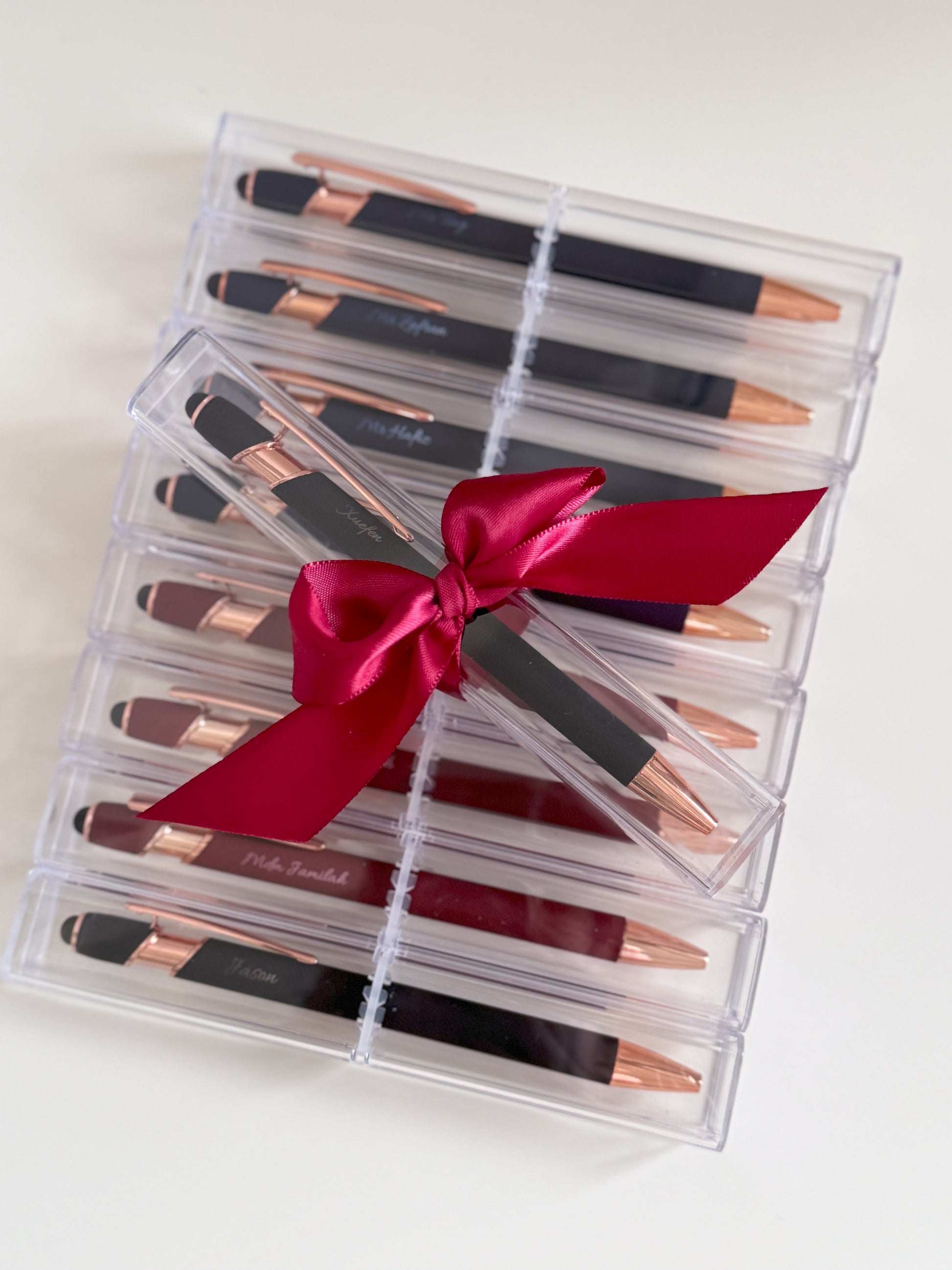 Celebrate Teacher's Day with a timeless and elegant gift: a classic pen available in your choice of red, blue, or black. Each pen is designed with rose gold detailing, adding a touch of sophistication and style.