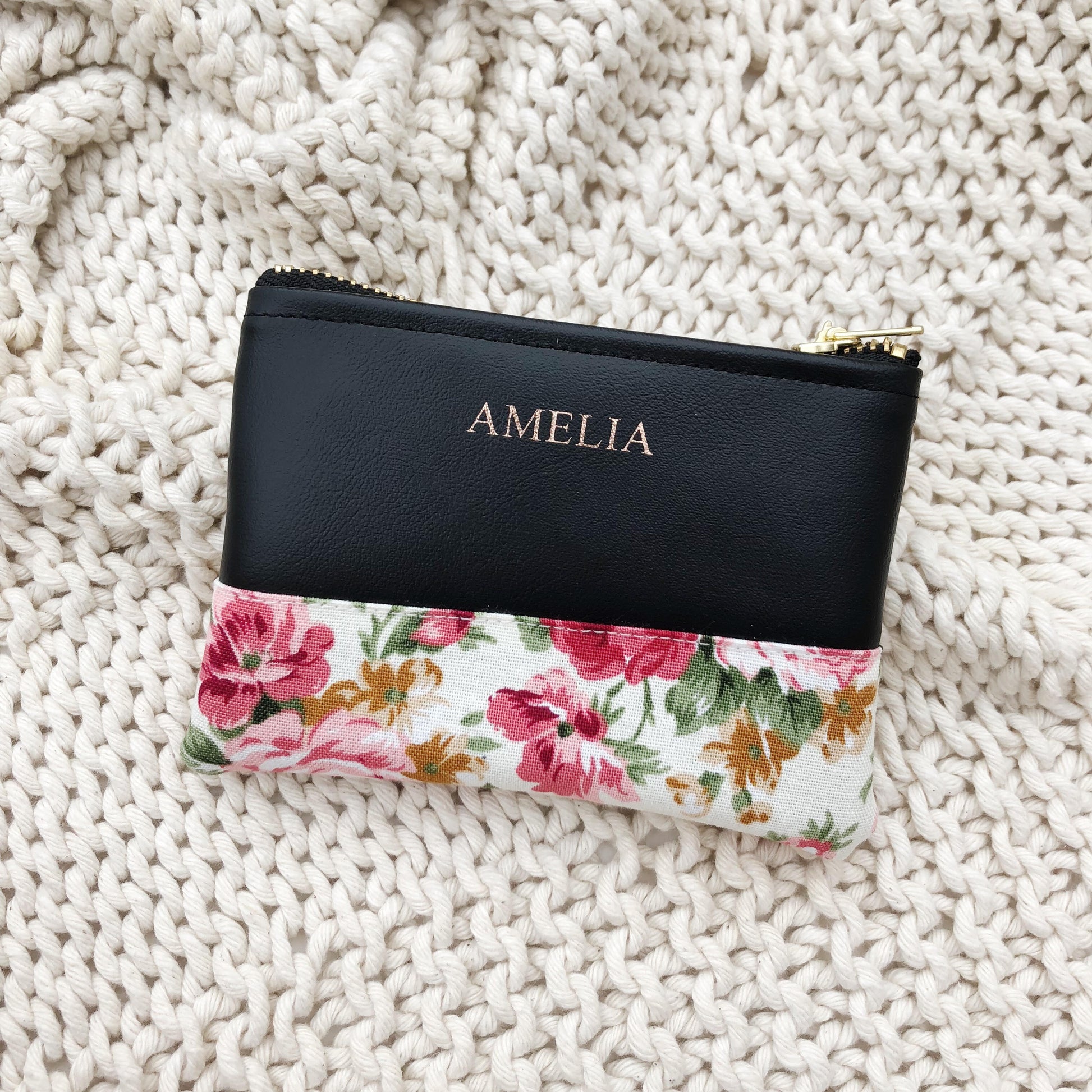 Introducing our meticulously crafted Everyday Pouch No. 5.5, a true epitome of pure elegance. With dimensions measuring 5" W X 4" H, this exquisite pouch combines Microfiber Leather and Japanese Print Cotton on the exterior, exuding a perfect blend of style and sophistication. The interior boasts Premium Japanese Black Cotton, ensuring a luxurious feel for your essentials. Enhanced with a Zip Fastening in Gold and personalized with a hand-stamped monogram, this pouch is a true expression of individuality and refinement.