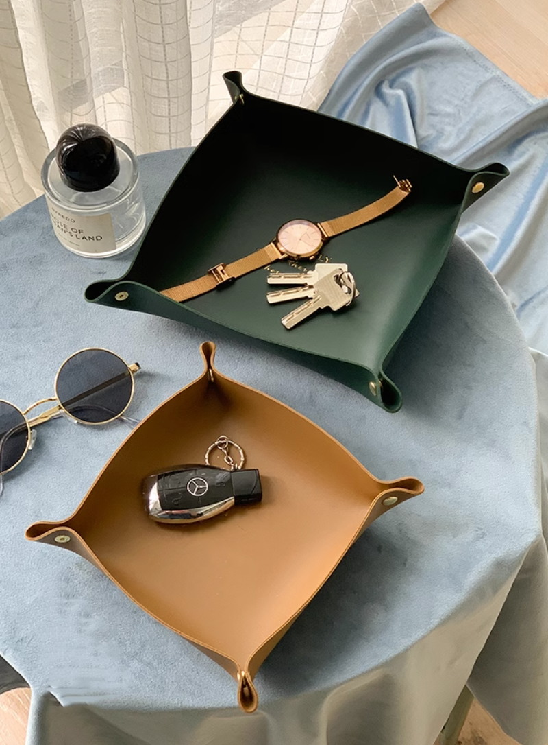 Discover the elegance of our Luxe PU Leather Tray - the perfect storage and display solution for your jewellery, watches, sunglasses, and car keys. Crafted from high-quality PU leather, this sleek tray adds a touch of sophistication to any space. Personalise it with custom calligraphy or a monogram to make it truly yours. Keep your belongings organised and beautifully showcased with this stylish and compact tray, an ideal addition to your home decor.