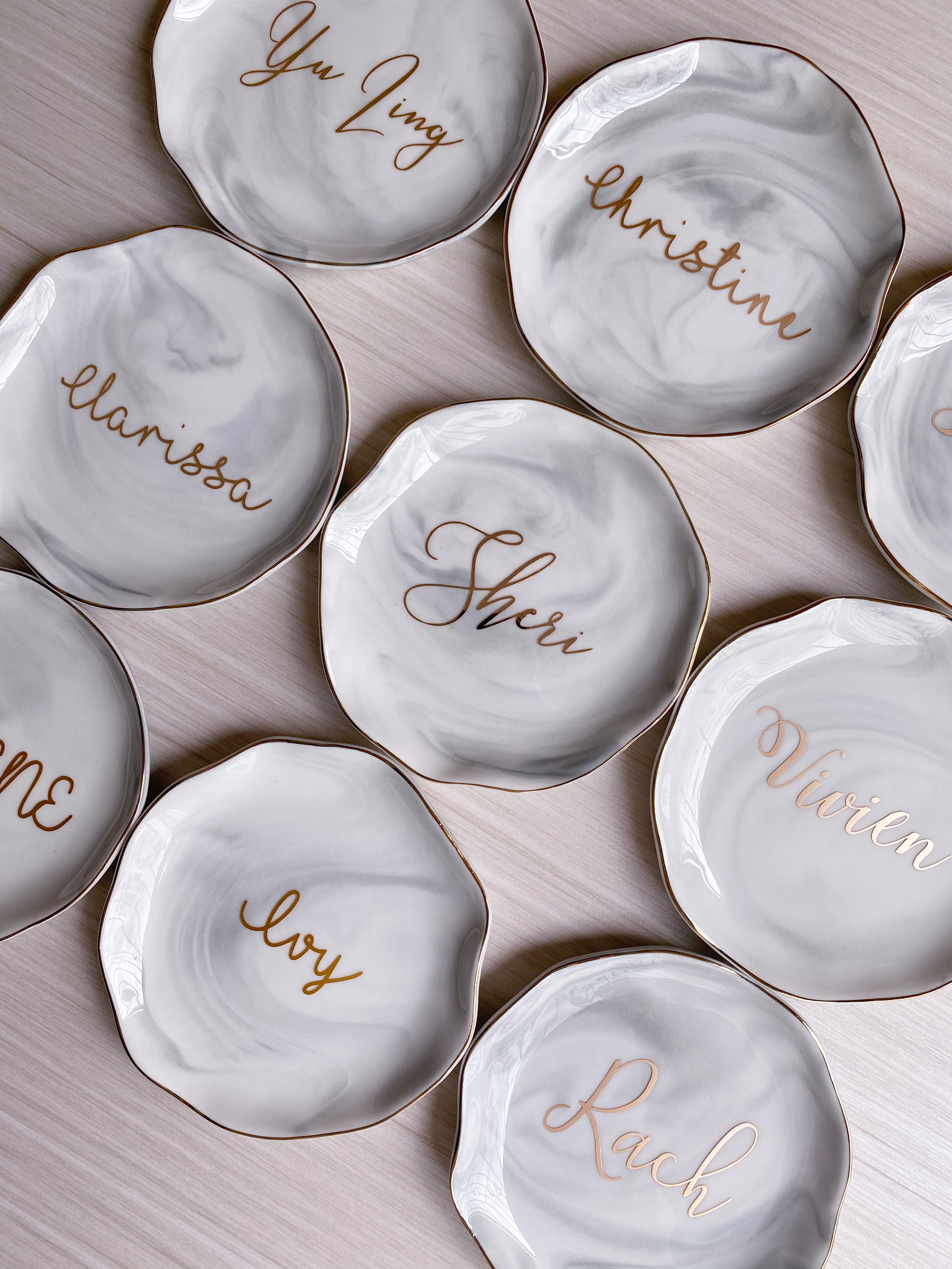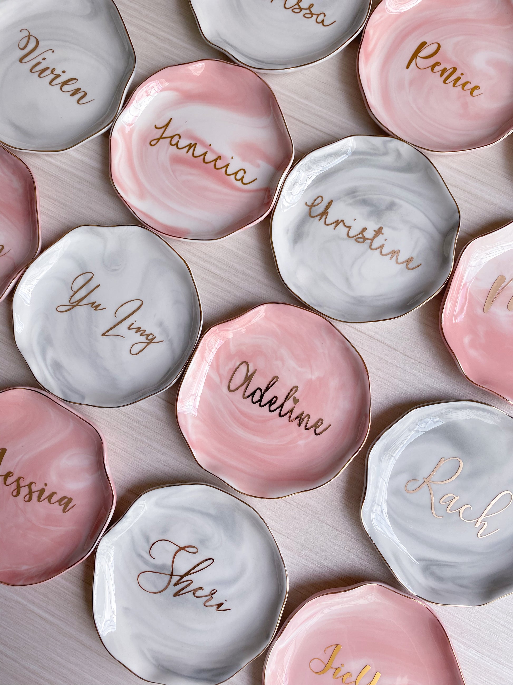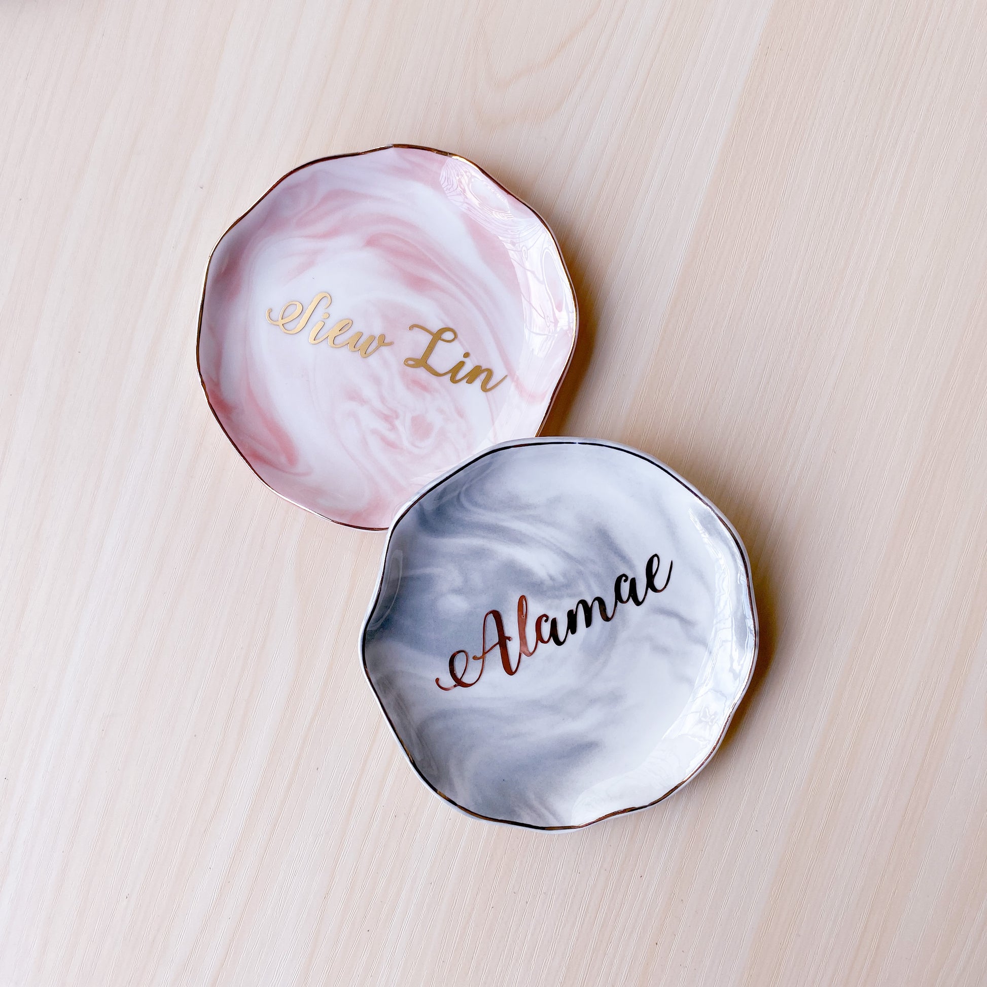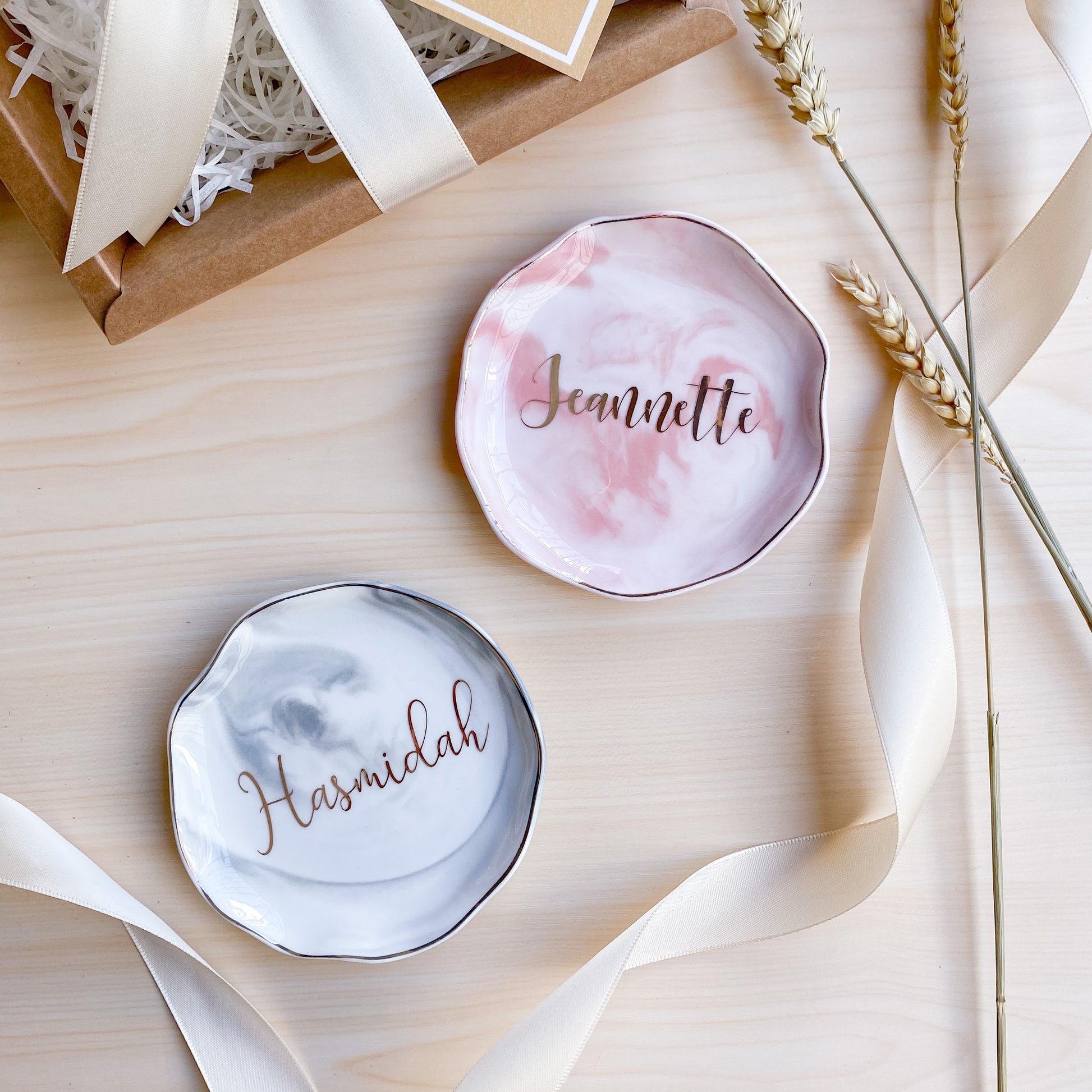 Personalised marble jewellery tray that are great gifts for families, friends and colleagues!