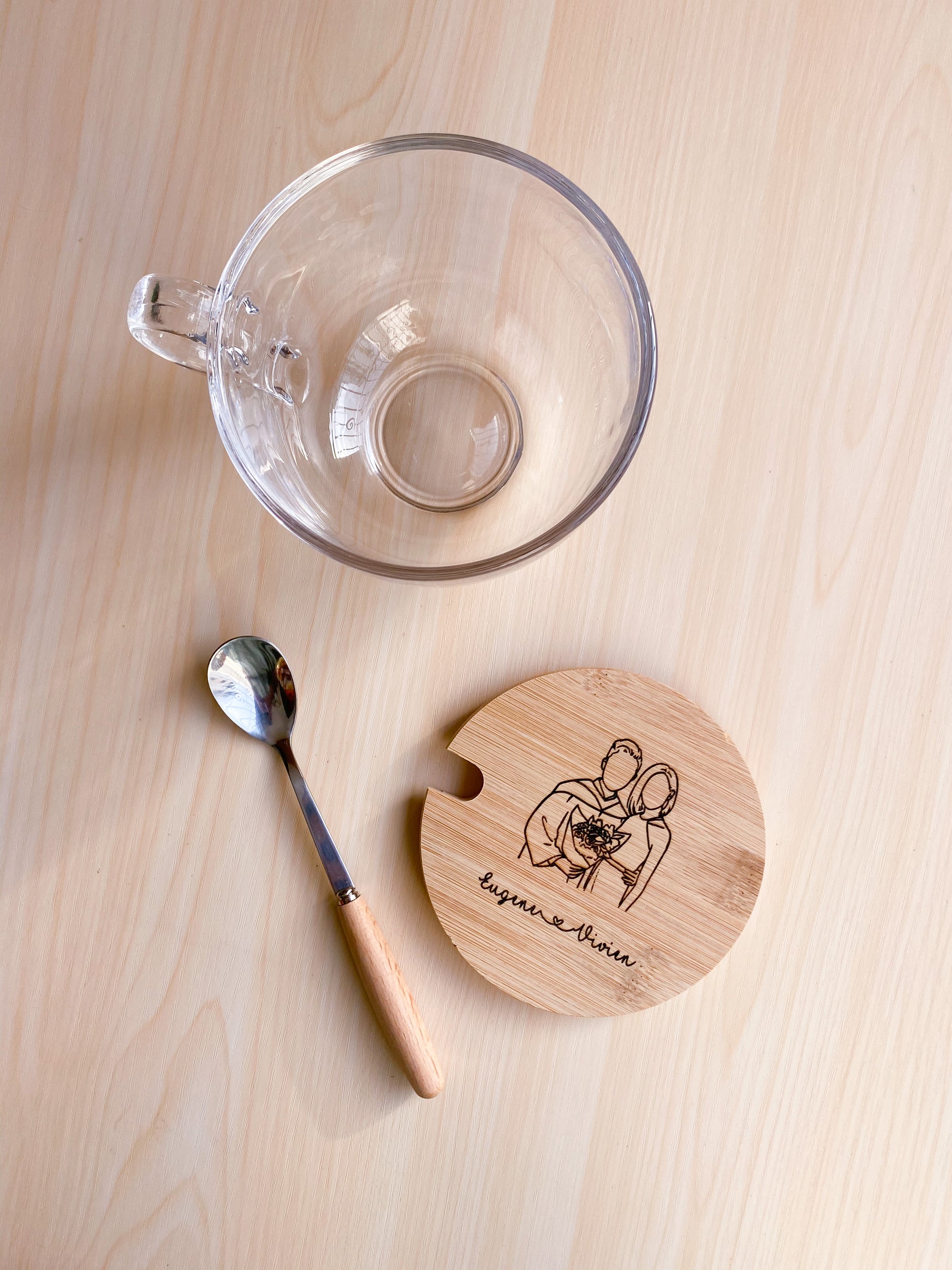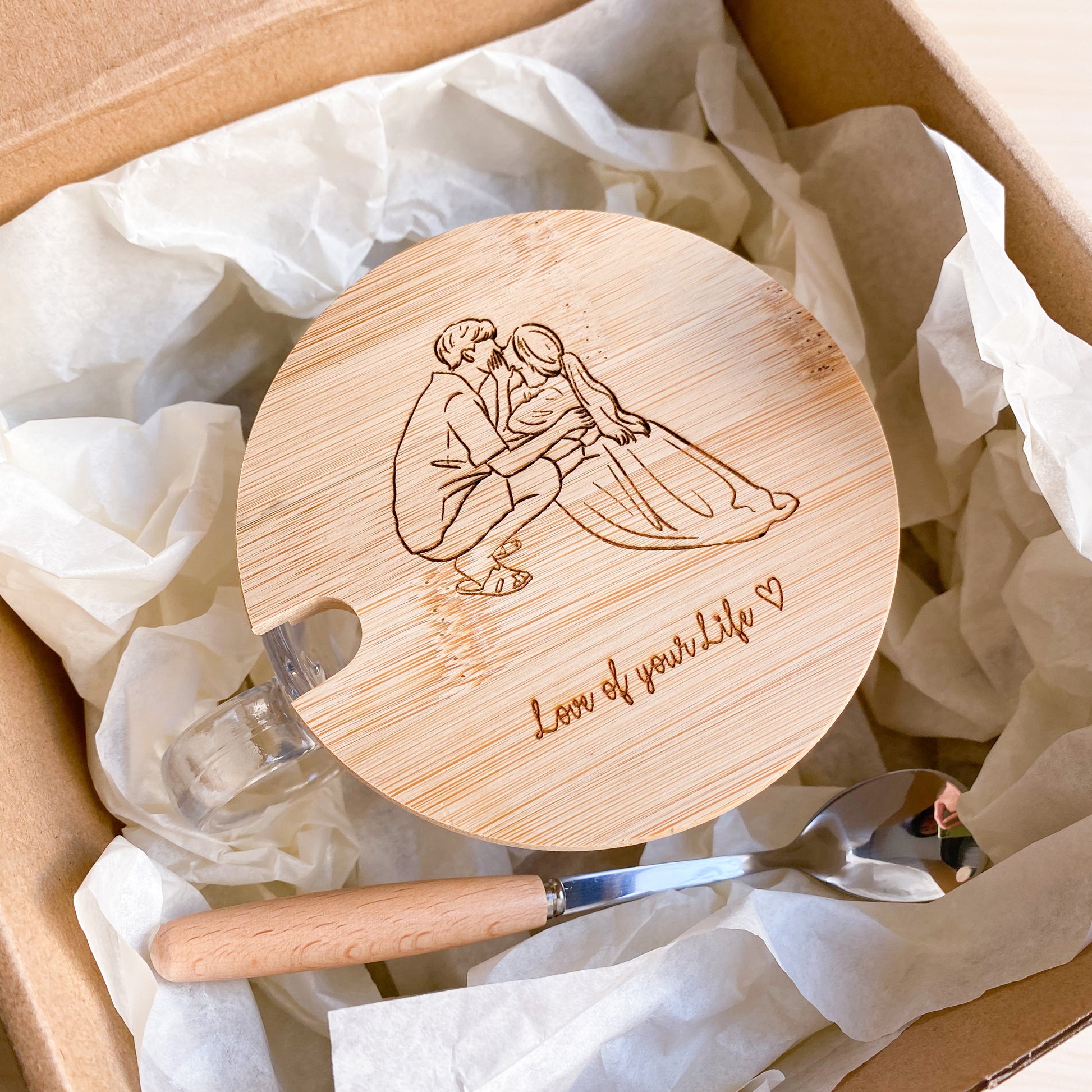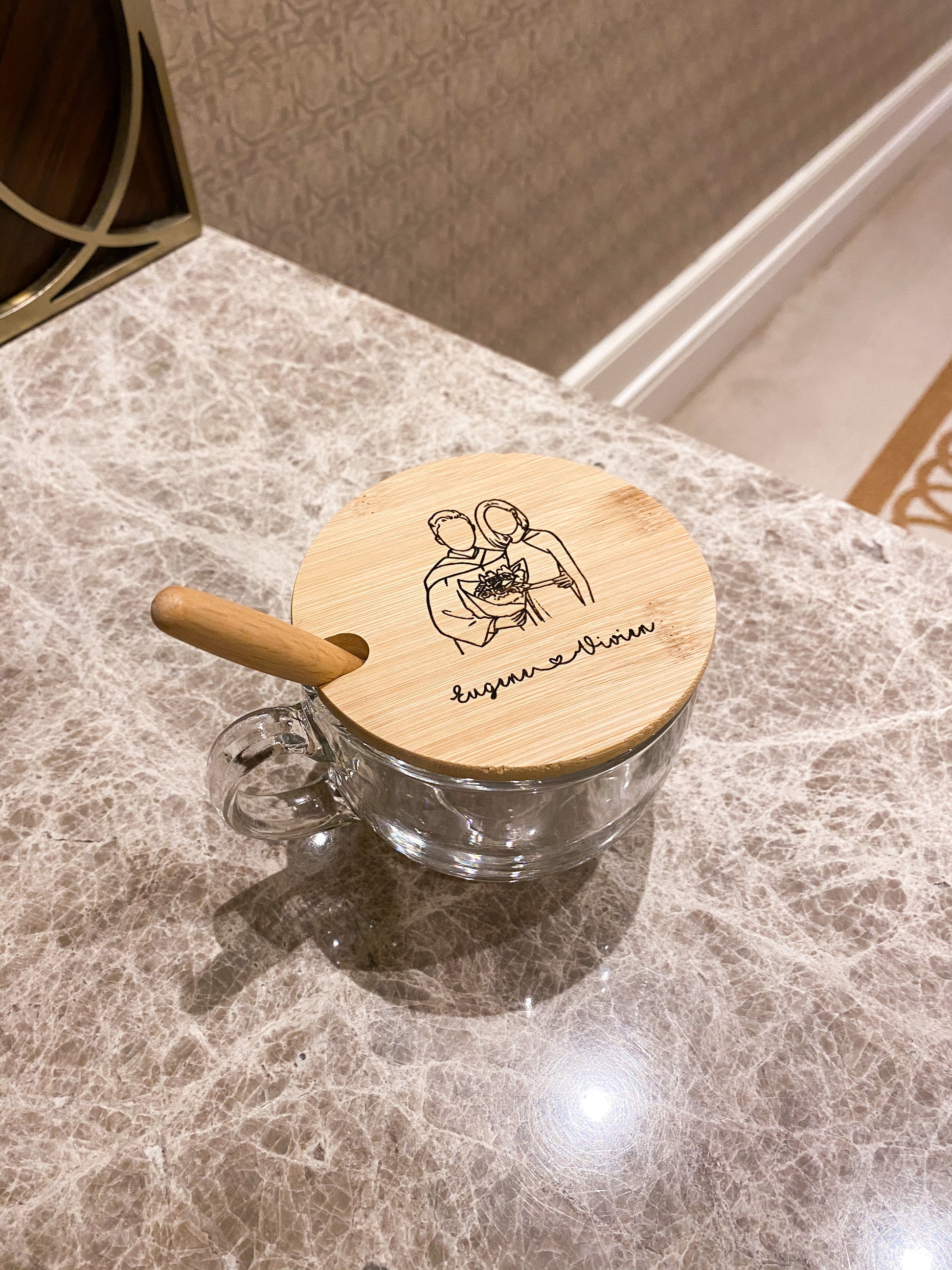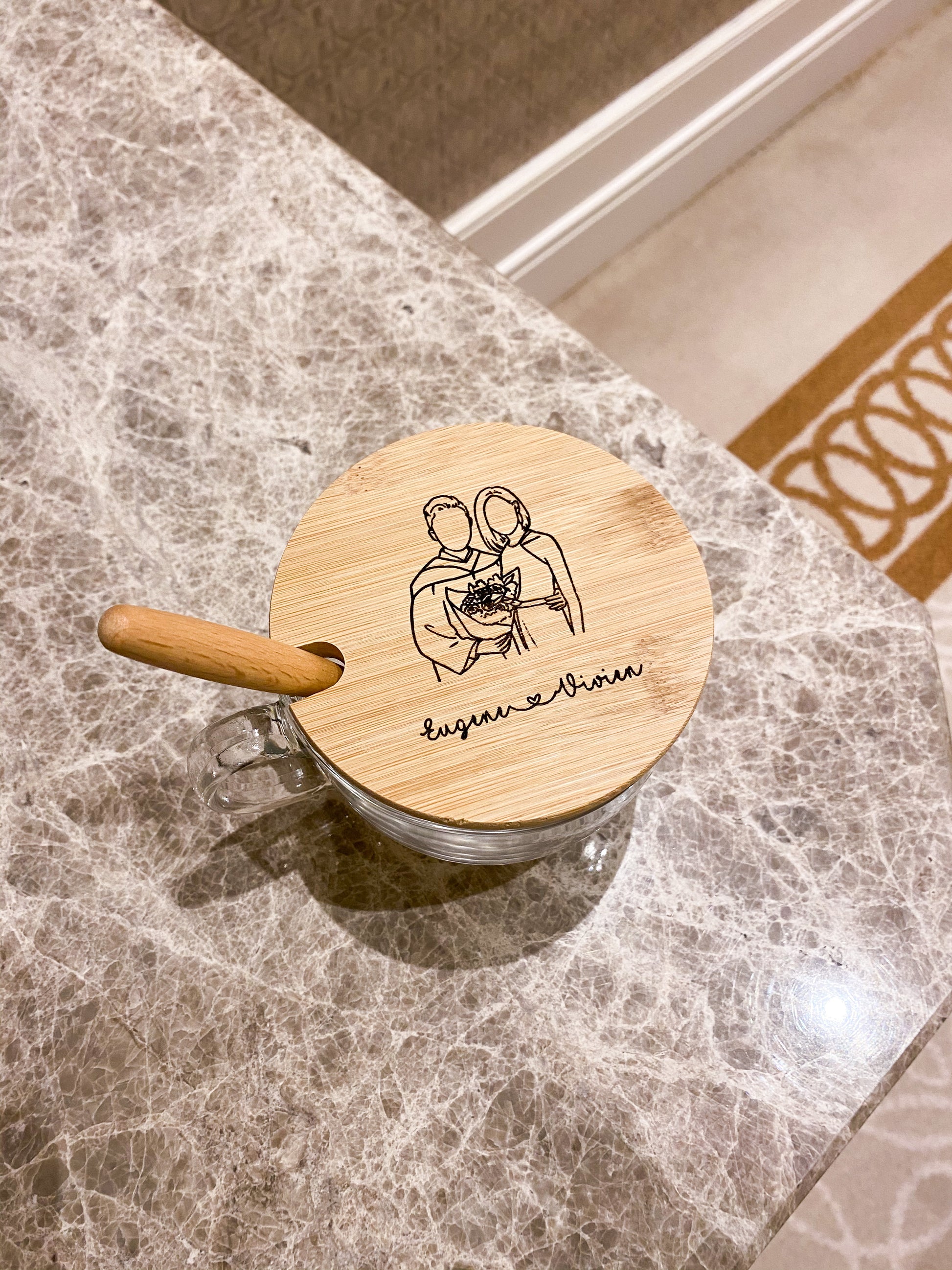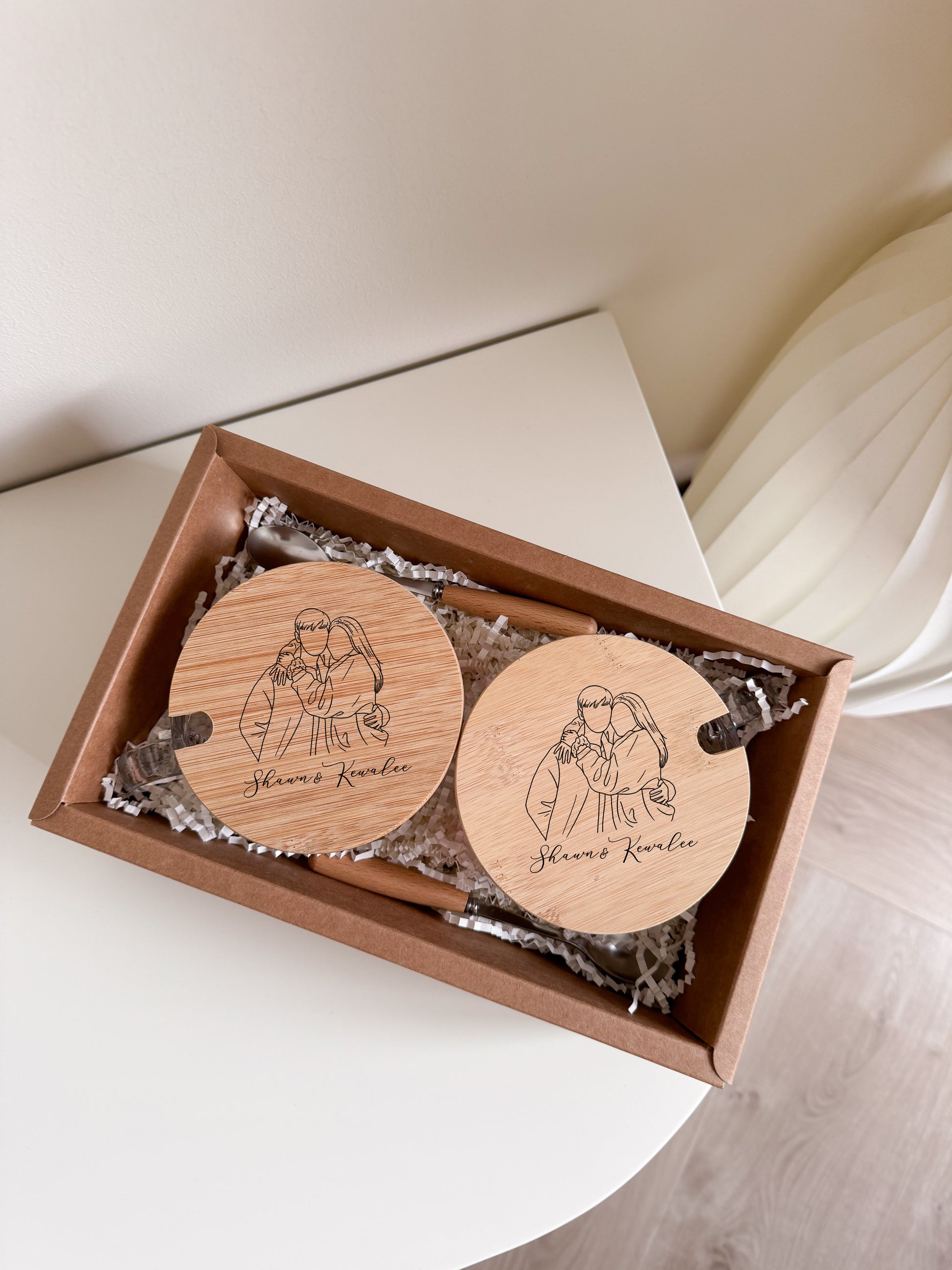 Each mug is customized with a hand-drawn portrait of you and your loved one, turning a simple mug into a cherished keepsake. Whether you're commemorating a wedding, an anniversary, or a new home, this personalized set adds a heartfelt touch to your special moments.